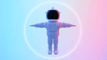 Astronaut standing in psychedelic color lighting. Abstract science fiction and astronomy surreal background. 3D rendering. Clipping path include.