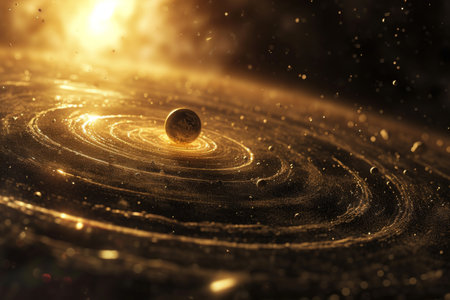 abstract cosmic background with gold metallic. generative ai. High quality illustration