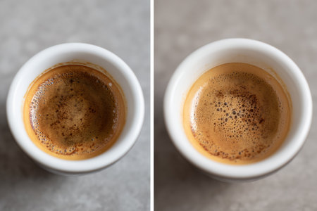 Two coffee cups show the difference in foam and texture, illustrating how caffeine affects focus and alertness in daily activities.