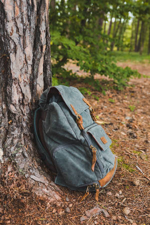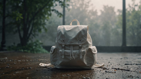 Backpack's Journey: A Stylish Travel Bag Rests on the Edge of Adventure