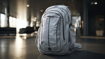 Urban Commute: A Stylish Gray Backpack Awaits the Journey in Modern Terminal