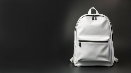 White leather backpack on black background. Back to school concept. Copy space. Generative AI