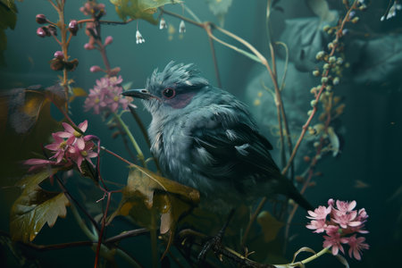 Bird flowers portrait. Life still. Generate Ai