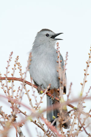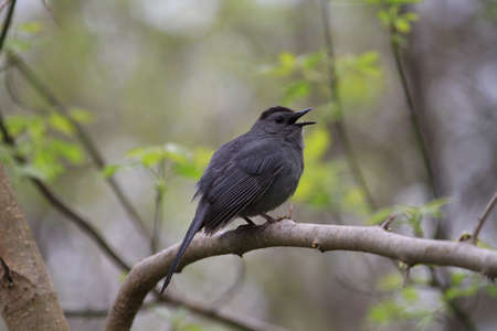 Gray Catbird calling from newly budding bushes