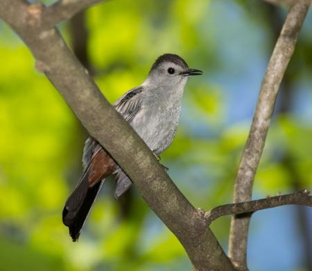 Adult Gray Catbird perching in a tree in Maryland during the Spring