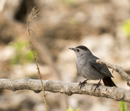 Gray Catbird (Dumetella carolinensis) on a branch in early spring