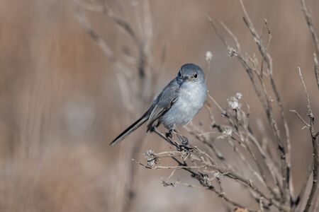 Blue Gray Gnatcatcher bird has delicate balance perched on the thin branches of the estuary vegetation.