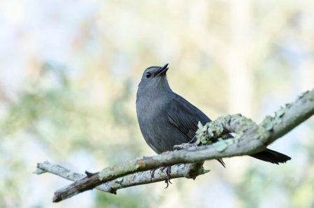 Gray Catbird perching on a branch during the Summer