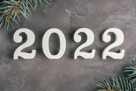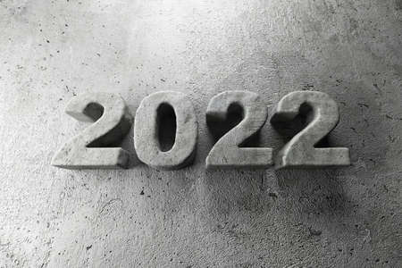 New year 2022 concrete text on grey wall, closeup. Space for text