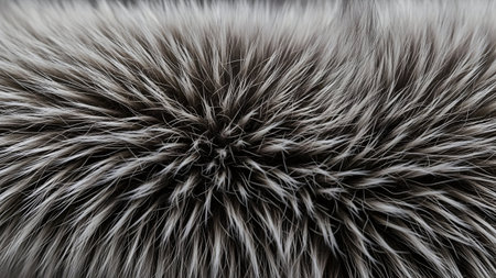 A close-up view reveals the intricate texture and soft sheen of luxurious fur. Delicate strands radiate outwards, capturing ambient light beautifully, showcasing nature's artwork.