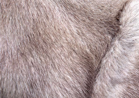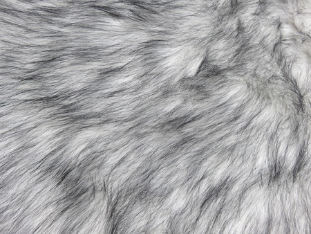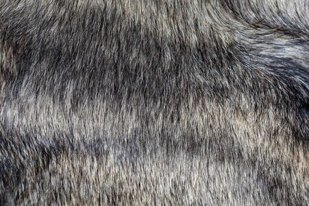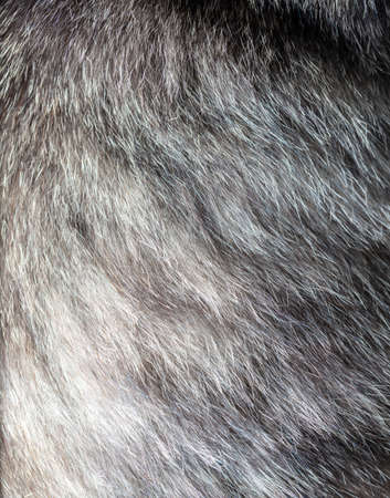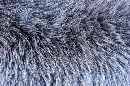 Fur texture of fox, silver color close-up background. Silver fox fur coat texture background.