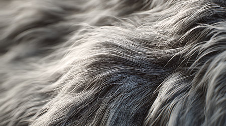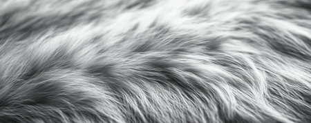 Soft texture of fur in shades of gray and white, perfect for backgrounds that evoke a sense of luxury and warmth.