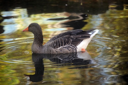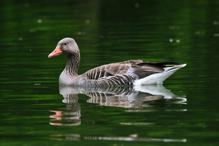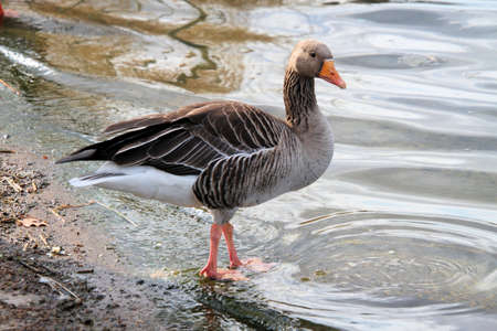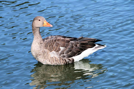 Greylag Goose (Anser anser) swimming in the lake at Riverside Garden Park