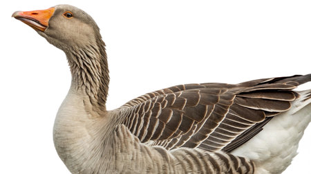 Side view closeup portrait of gorgeous grey goose living on farm with blurred background copy space