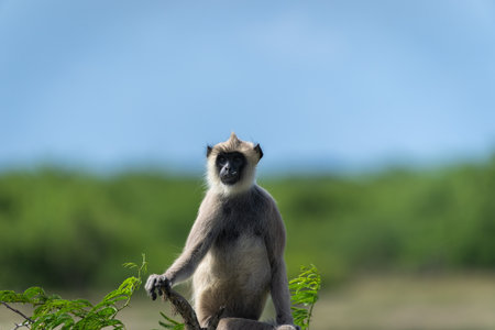 Gray langur or Hanuman langur, Semnopithecus entellus, in Sri Lanka island.