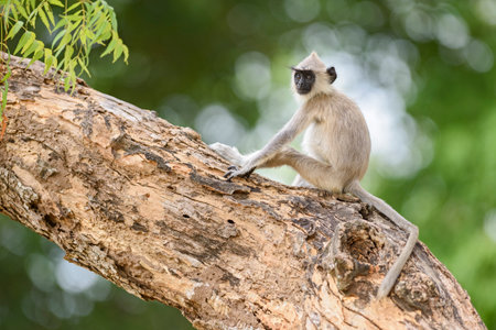 Gray langurs, sacred langurs, Indian langurs or Hanuman langurs are a group of Old World monkeys native to the Indian subcontinent, monkey sitting on tree, Sri Lanka, exotic adventure in Asia