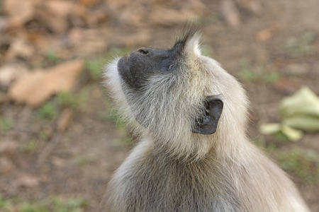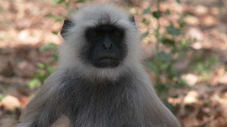 Closeup portrait of Tufted gray langur (Semnopithecus priam), also known as Madras gray langur, and Coromandel sacred langur