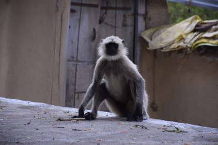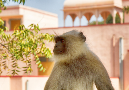Gray langur sitting in Amber Fort near Jaipur, Rajasthan, India. Gray langurs are the most widespread langurs of South Asia.