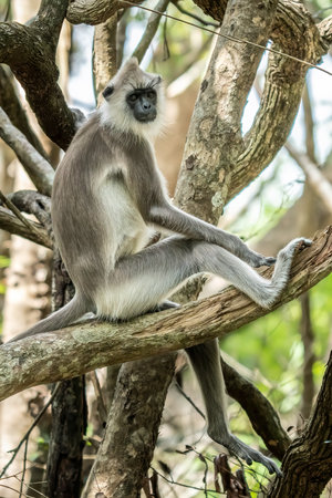 Monkey sitting on the tree in the jungle, Sri Lanka