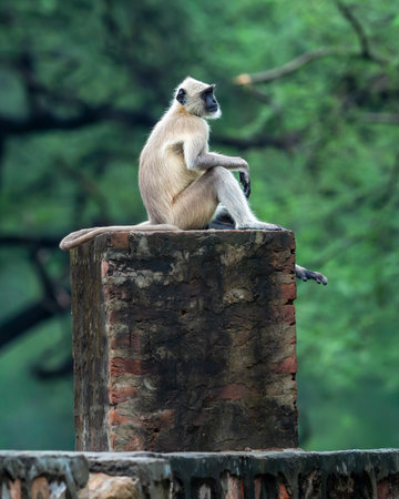Gray langur sitting in Jaigarh Fort near Jaipur, Rajasthan, India. Gray langurs are the most widespread langurs of South Asia.