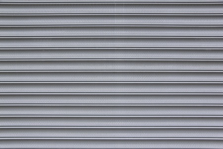 The texture of the wall is made of metal coating of huge aluminum plates of relief shape with horizontal notches. A variety of metal siding close-up