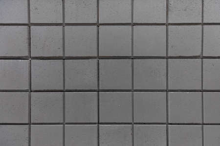 Close up of grey stone wall texture background with square tiles pattern.