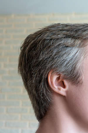 Gray hair on the head of a man. close-up