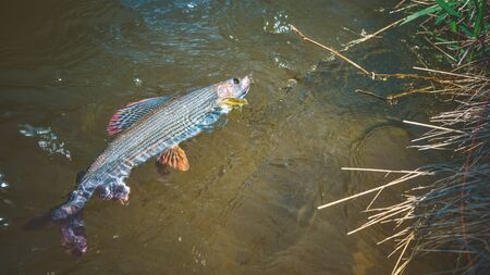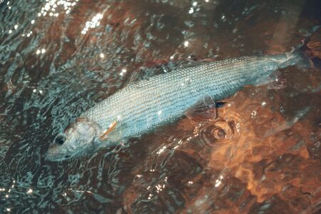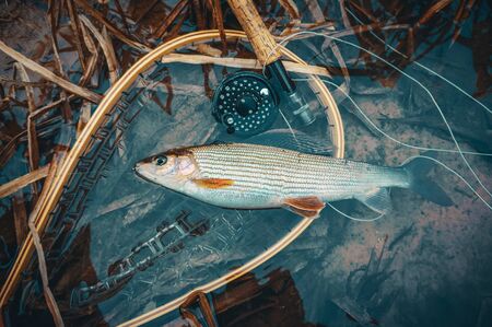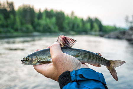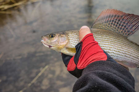 European grayling. Production of a fisherman on the Ural river - birch grayling.