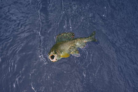 Sport fishing in the north river. Dynamic picture when Saberfish (Pelecus cultratus) are brought to the surface