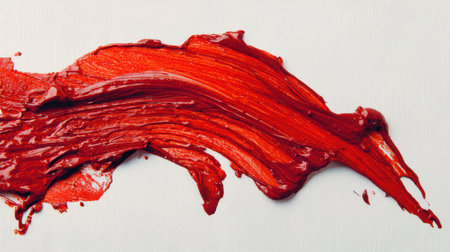 A striking swirl of vibrant red acrylic paint against a textured canvas evokes creativity and artistic expression, perfect for various design projects.