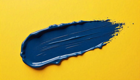 Vibrant blue paint stroke on a yellow backdrop design