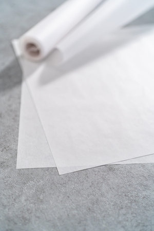 Sheets of baking paper on gray background