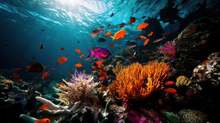 Colorful coral reef underwater, marine life ecosystem background