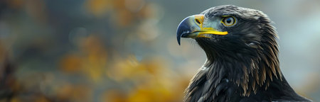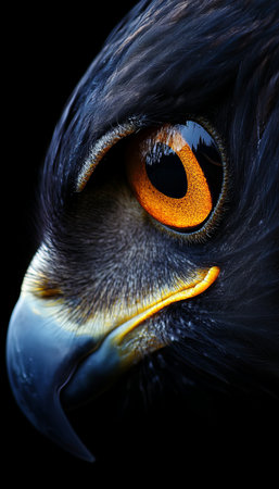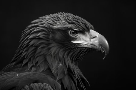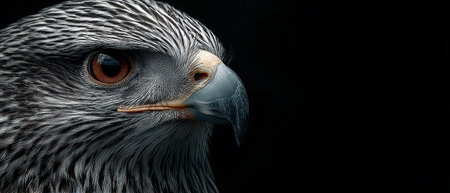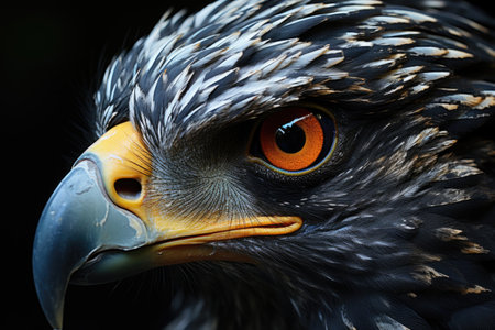 Majestic Raptor Portrait Close-up Detail of Eagle Head, Piercing Gaze on Dark Background
