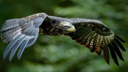 Majestic eagle is showing beautiful feathers while flying in nature