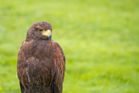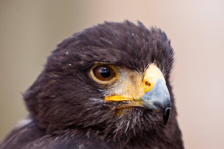 Closeup portrait of the Harris hawk seen from the front