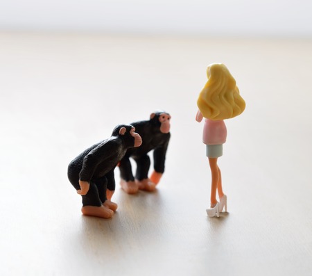 Colorful toy dolls playing together in a vibrant setting with an arch.