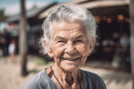 The close up picture of the grandmother living with the family in garden background, the picture of the family that has been filled with happiness, enjoyment and love also surrounded by nature. AIG43.