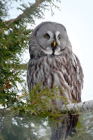 Great Gray Owl (Strix nebulosa) looking at the camera