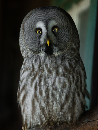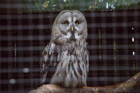 Close-up of Great gray owl (Strix Nebulosa) in Cabarceno park, Asturias