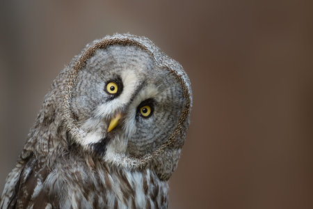 Close portrait of Great Grey Owl, Lapland Owl (Strix nebulosa).