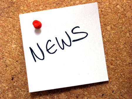 News words letter, written on piece of paper memo, work desk top view. Business typography concept