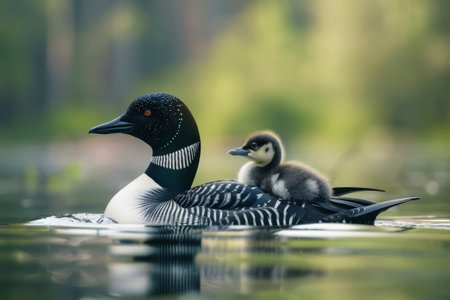 Common loon (Gavia immer) with a chick