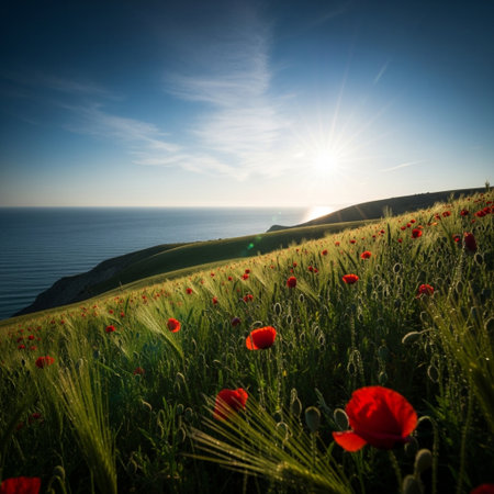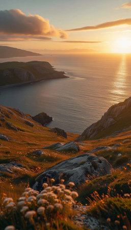 coastal path at golden hour, grasses glowing and ocean horizon ahead --chaos 30 --ar 16:9 --v 6.1 Job ID: 85a52e9f-6afe-4842-b3a2-f4a041f5e8bf