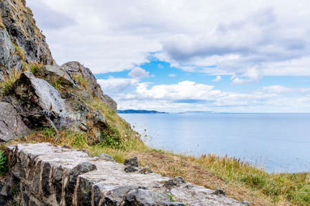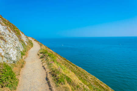 hiking trail on cliff skirting the sea in Howth, Ireland