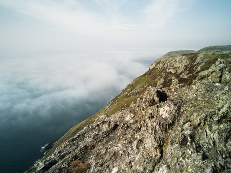 Fog covering the Jurassic Coast in Dorset taken from the Isle of Portland