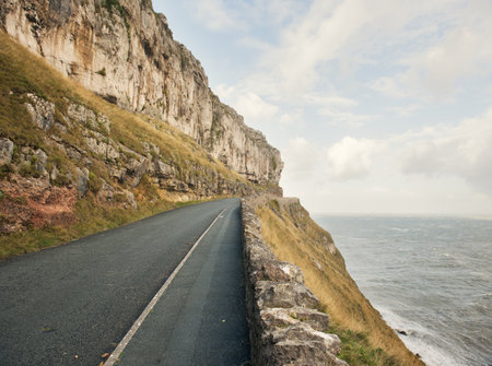 Empty Road At Cliff Edge, Llandudno, Wales, Uk