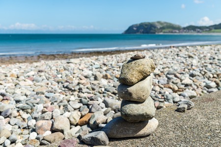Stone Pyramid on Beautiful Summer Day in Llandudno Sea Front in North Wales, United Kingdom