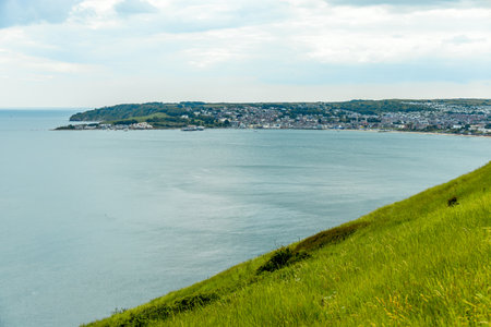 Llandudno Sea Front North Wales, United Kingdom. View of beach in a beautiful summer day, United Kingdom. Views from the Great Orme. Photo shoot from the top of Conwy mountain to Llandudno