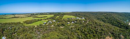 Aerial panorama of coastal vegetation and agricultural land of Walkerville, Victoria, Australia